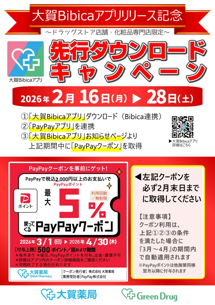 - ~ドラッグストア・化粧品専門店限定~【大賀Bibicaアプリリリース記念】先行ダウンロードキャンペーン!