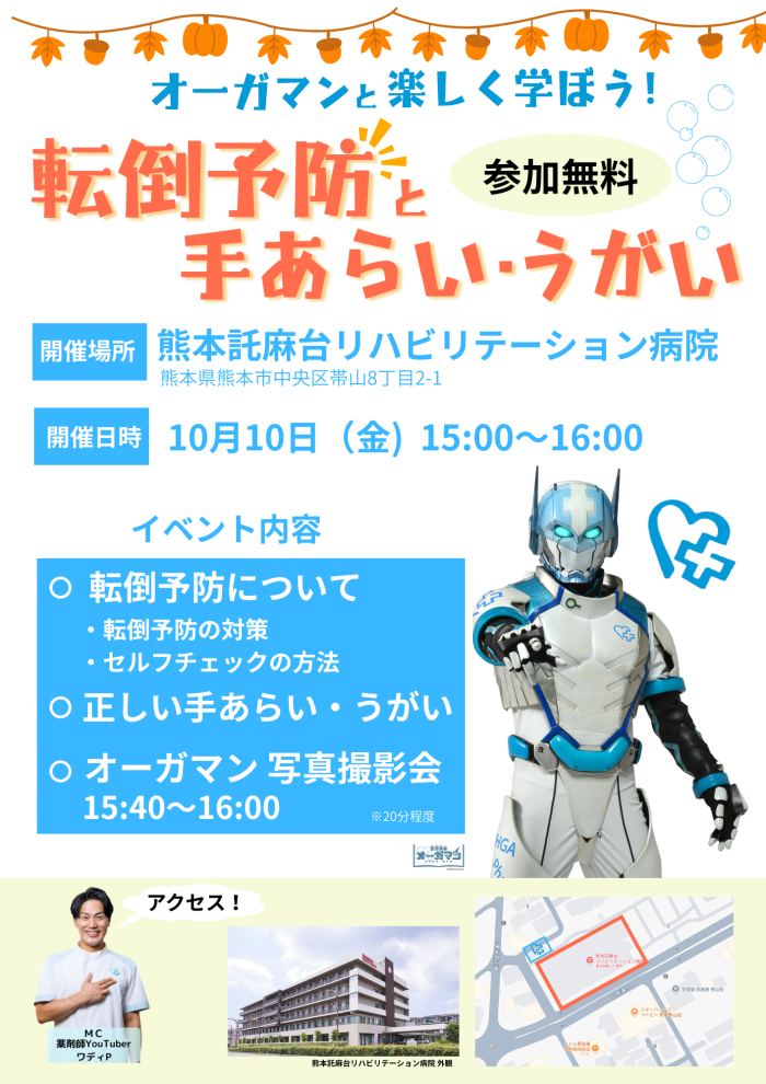 転倒予防と手あらい、うがいin熊本託麻台リハビリテーション病院
