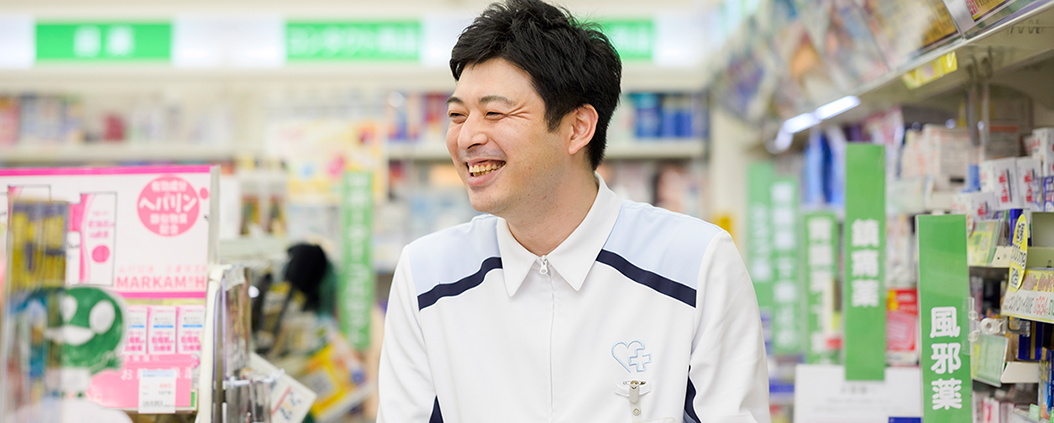 ドラッグストアにはお薬や健康食品、化粧品、日用品など膨大な種類の商品のお取り扱いがございます。そんな中、どんなことでも気軽に聞けて、相談ができる「人」がいる…、それが私たちの目指すドラッグストアです。