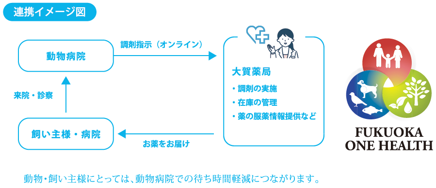 さらに、時代の変化を見据えながら、老舗企業でありながらも新たな挑戦を続けています。近年では、人・動物・環境が調和する「ワンヘルス」の理念を推進し、2024年には動物専門の調剤を開始。2025年にはグループ会社として「大賀ウェルネスサポートクルー」を立ち上げ、訪問看護ステーションを開設しました。これからも地域医療と健康を支える新たな取り組みに挑戦し続けます。