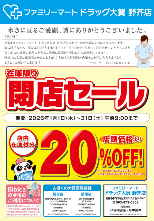 ▶2026年 1月 31日 午前 9時をもちまして閉店いたします - 定休日